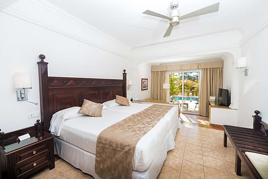 Swim-Up Junior Suite + 18 YRS is 355 square feet and includes 2 double beds 131-150 width plus living room, extra beds on demand, and bathrobes and has a Disability-friendly bathroom.